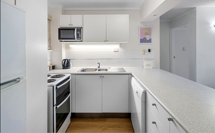 Fitted out with a Large flat screen TV that has streaming facilities and free to air broadcast. Full kitchen and laundry facilities including full size fridge, dishwasher, oven and microwave. Some are fully air conditioned (living and bedrooms) and some have the air conditioner in lounge only. If you are interested in a fully air conditioned apartment please contact reception for information regarding availability.